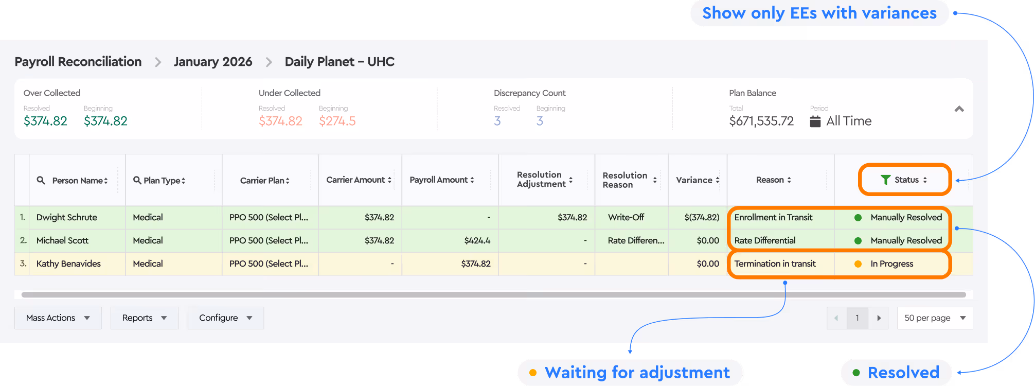 - Carrier invoice vs. payroll and COBRA data