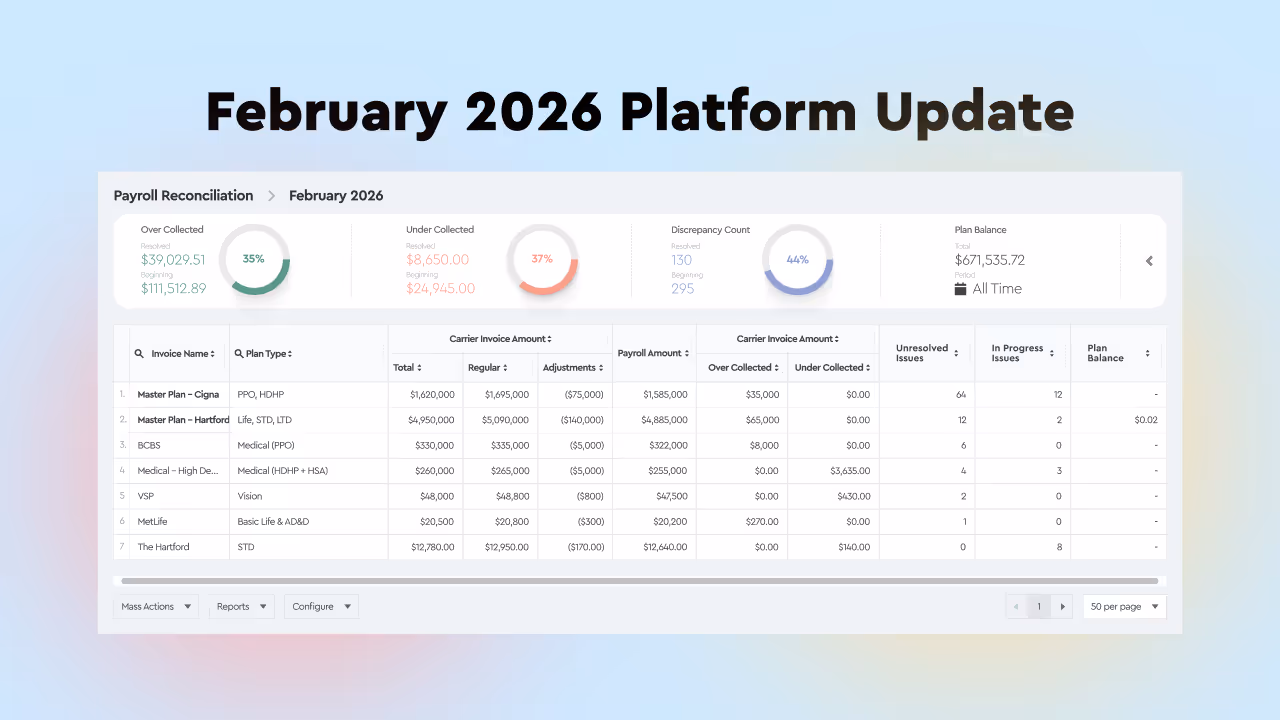 - Carrier invoice vs. enrollment and COBRA data