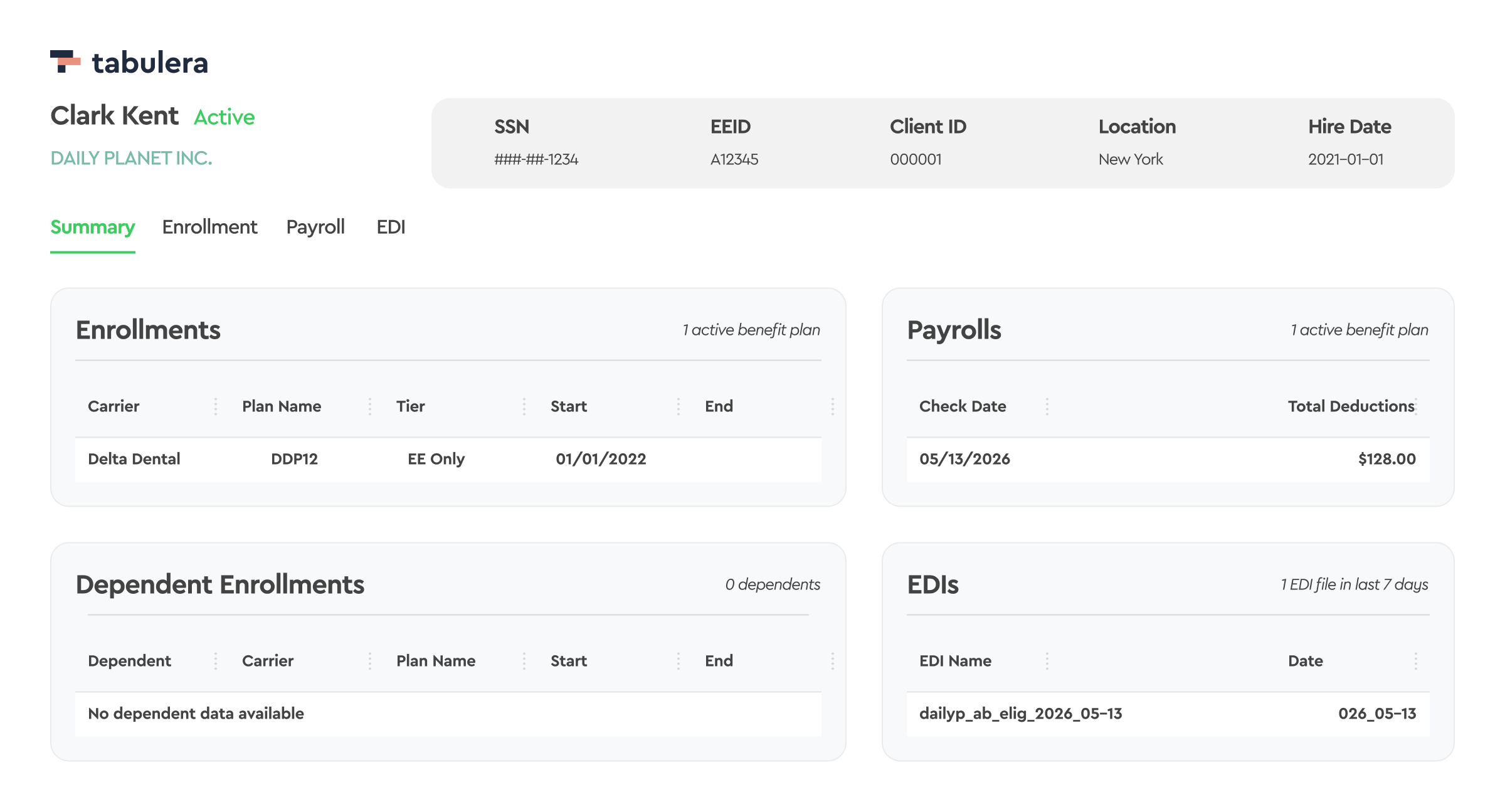 Tabulera is a white-glove EDI 834 service provider combining expert execution and full-visibility software, delivered in 30 days.